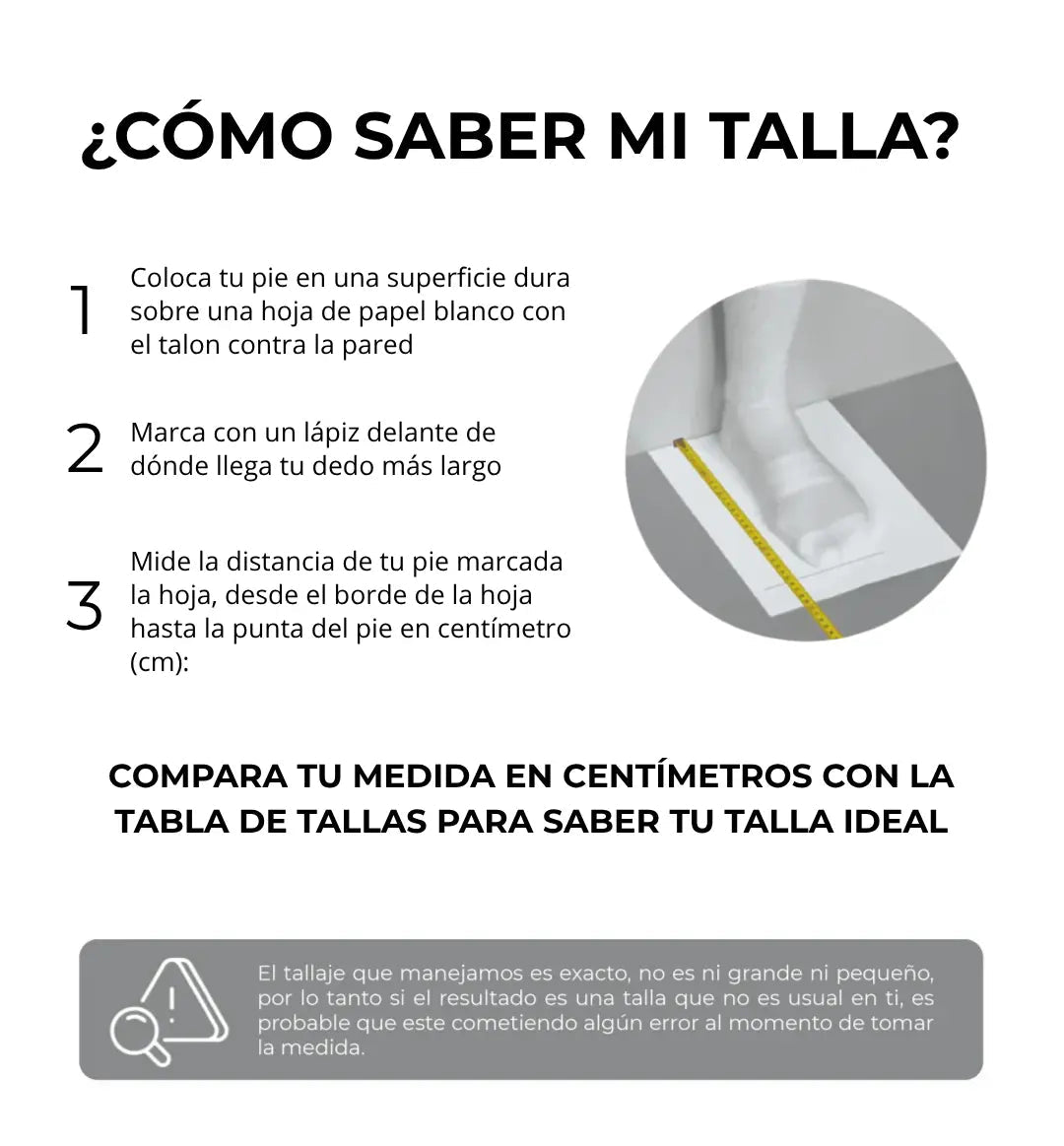 Trabajamos con tallas nacionales y nuestras hormas siguen un patrón normal. Para facilitar tu elección, ponemos a tu disposición una guía de tallas justo debajo del selector de talla en nuestro sitio web. Consúltala para encontrar tu talla perfecta.